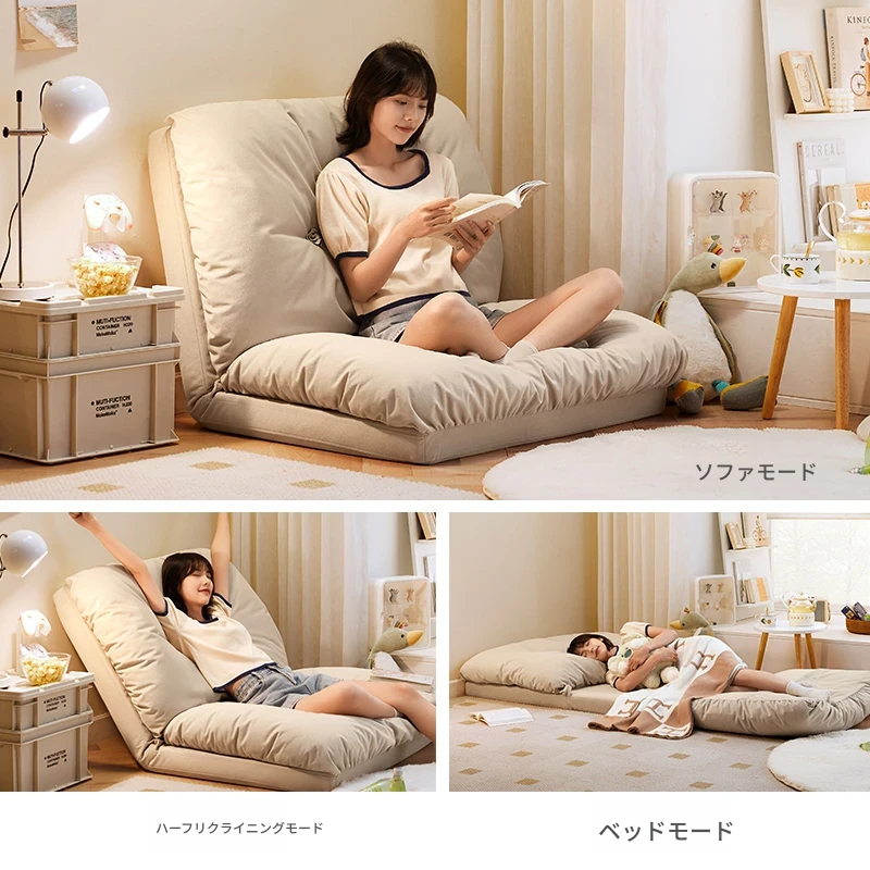 政府の助成金付き!林氏家居のクリーミーモジュール仕様ソファベッド。リビングに最適な省スペース設計、小さなお部屋にもぴったりな便利な2WAYソファチェア!【快適さとスタイルを両立】