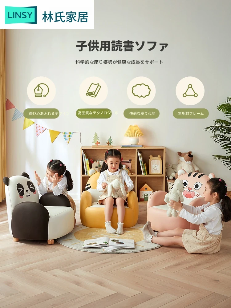 林氏家居 子供用カウチ ソファコーナー 可愛いアニメ風 ベビーソファ 動物型シート 林氏木業 〜 お子様の楽しい読書タイムを演出!