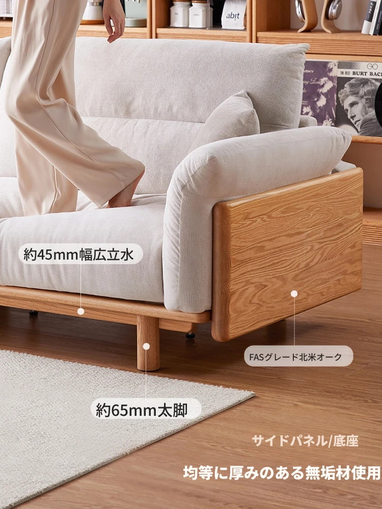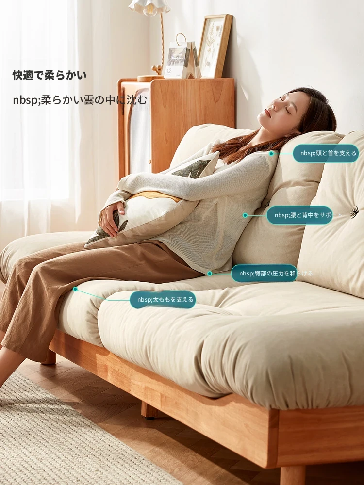 政府補助付き!2024年新作・林氏家居の無垢材ソファ。小型住宅に最適なクリーム風デザインで、リビングを華やかに演出します。