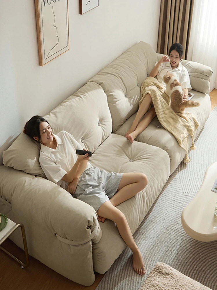 林氏家居のクリーミーカラーバッグソファー - 小さなリビングにもぴったり!猫の爪も気にせず、スタイリッシュで快適な布製家具。木製フレームで頑丈さも安心。林氏木業 BS119モデル!