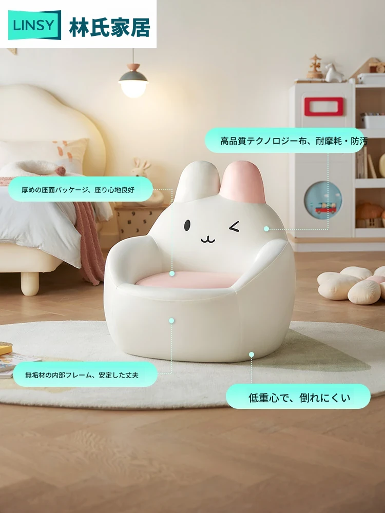 林氏家居のうさぎ子供用ソファ - かわいいクマの赤ちゃん向け!読書スペースに最適なコンパクトソファチェア、子供の夢を育む快適さとデザイン。お部屋を楽しく彩るアイテムです!