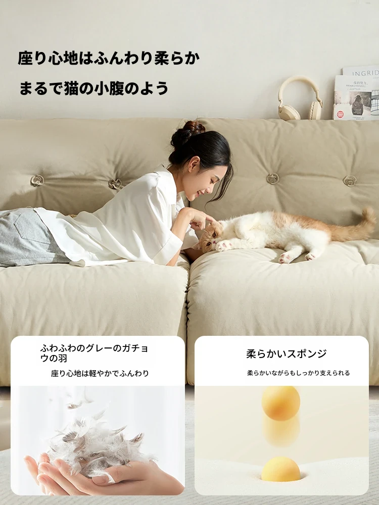 政府補助付きのリン家居クリーム風雲ソファー - リビングにぴったりの2024年新作、小型スペースにも最適!猫も満足の布地家具。快適なひとときをお届けします。
