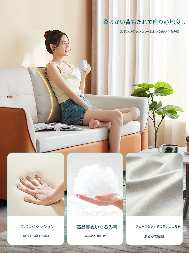 政府補助付き・リン氏家具のクリーミー雲のデザインソファベッド!折りたたみ式でおしゃれ収納可能、書斎や小さなリビングにぴったり。快適な眠りと心地よさを両立した理想的な一品。
