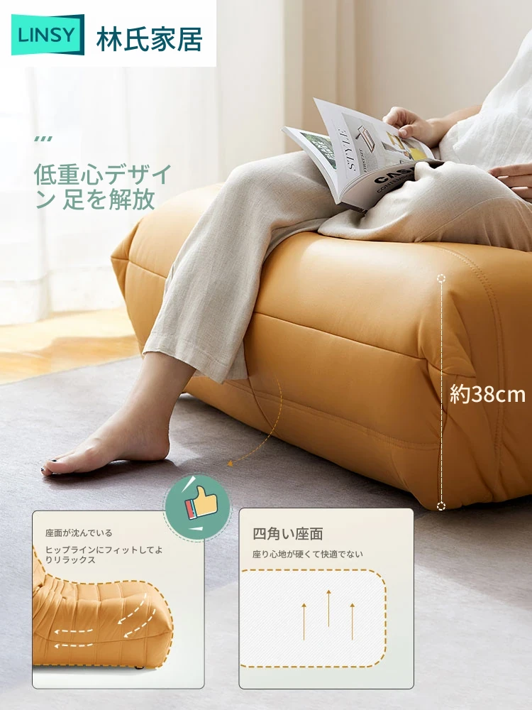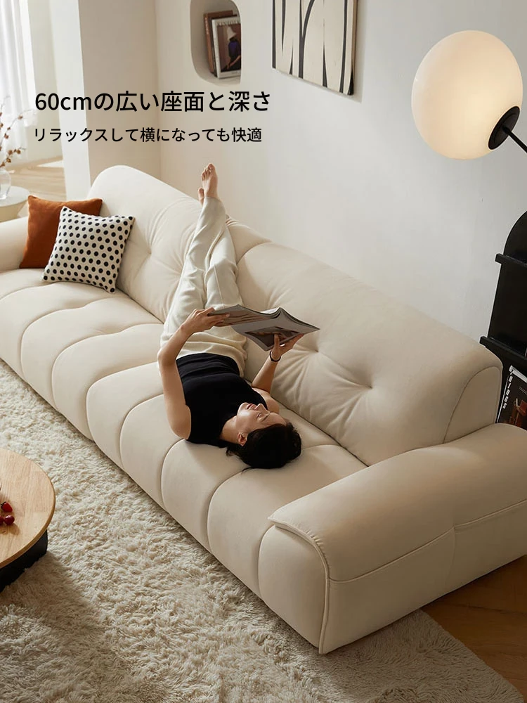 政府の補助金対象!林氏家具のクリーミーな布製ソファ、リビングにぴったりの新作。モダン&シンプルデザイン、猫の爪を引っかけても安心なパフソファ。あなたのくつろぎ空間を彩ります!