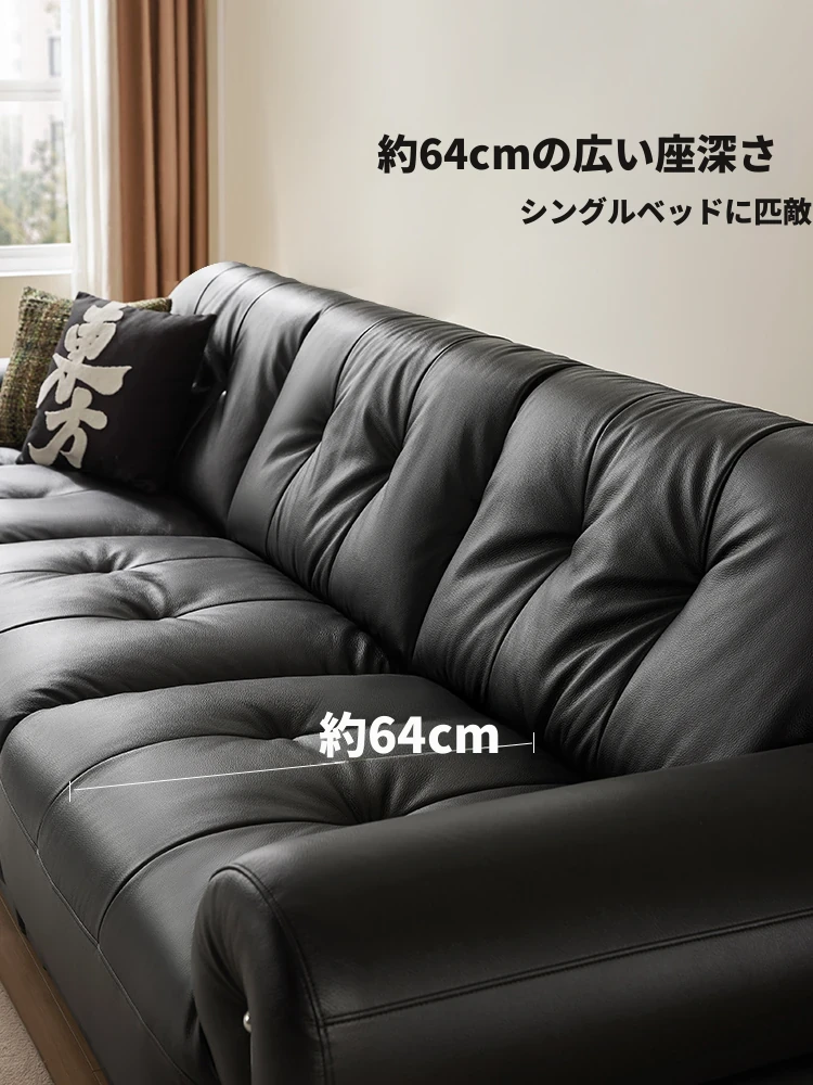 政府補助!林家家具2024年新作レトロブラック本革ソファ、リビングにぴったりな省スペースデザインで快適なひとときを。
