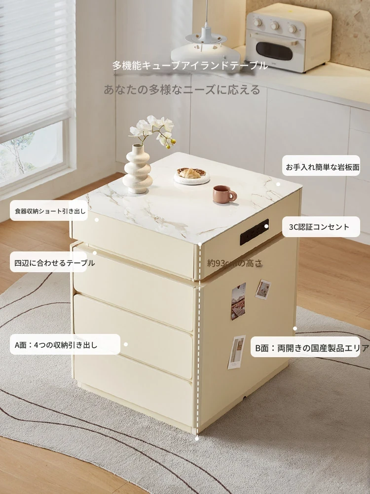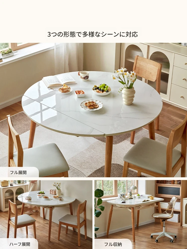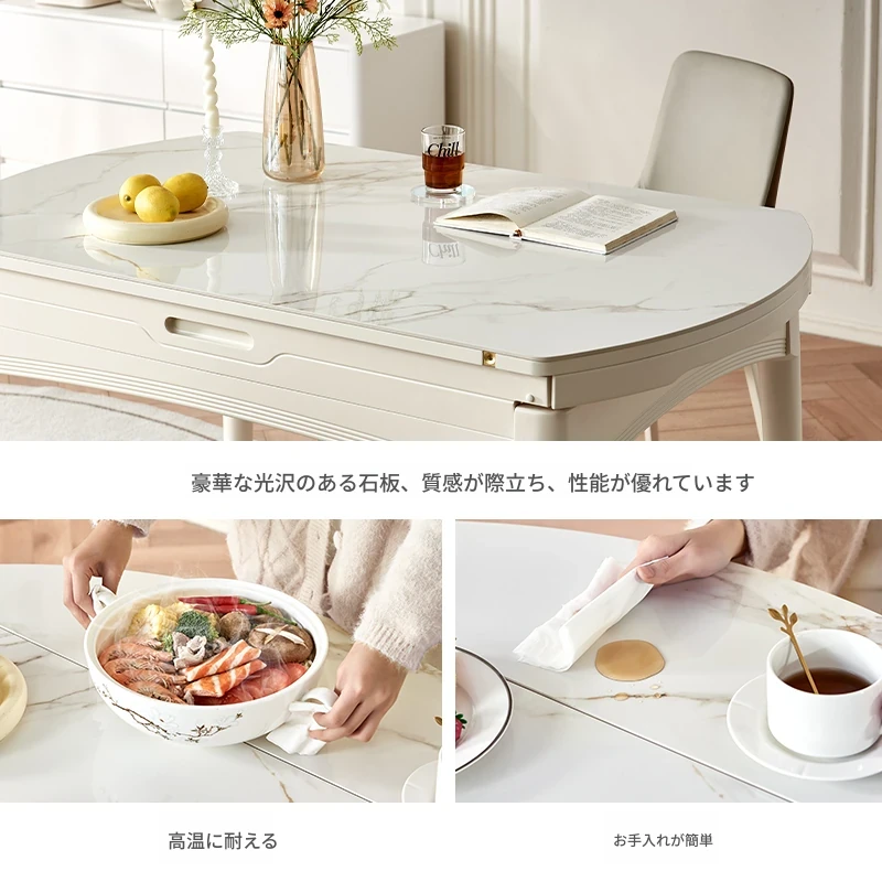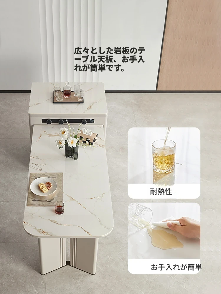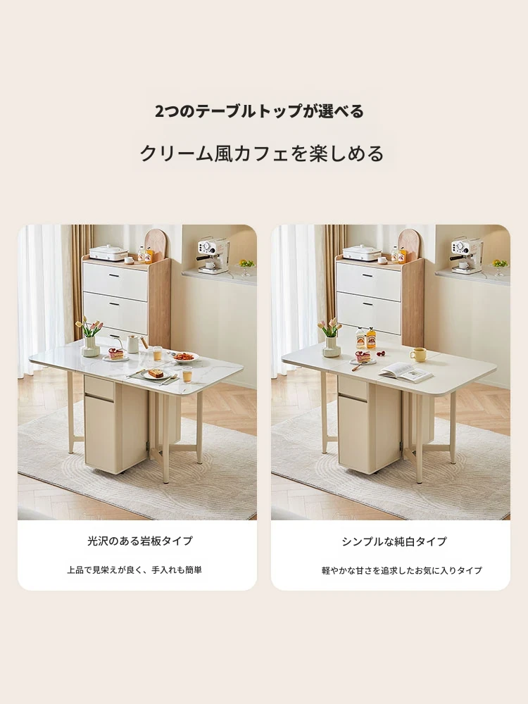 政府補助付き リン氏家具クリーミー風の岩板ダイニングテーブル 2024年新作 小スペース向け 折りたたみテーブル収納キャビネット付き