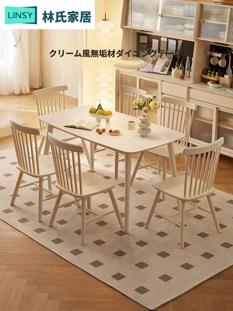 林氏家具のクリーミーな木製ダイニングテーブル 四脚椅子付き 長方形デザインで優雅な食事空間を演出!LH094モデル。家庭の中心にぴったりのスタイリッシュな選択。