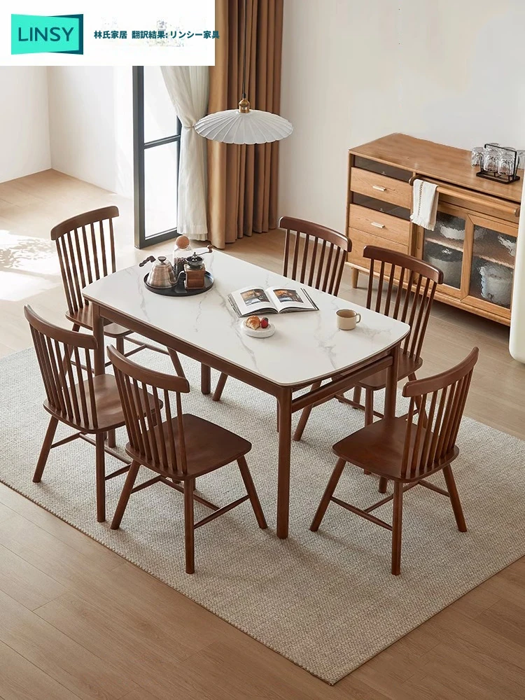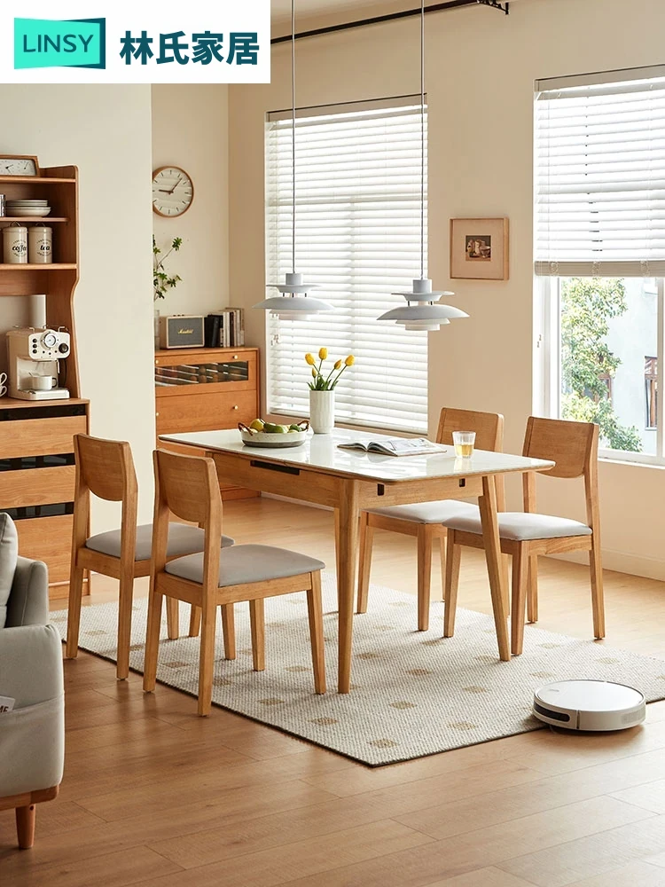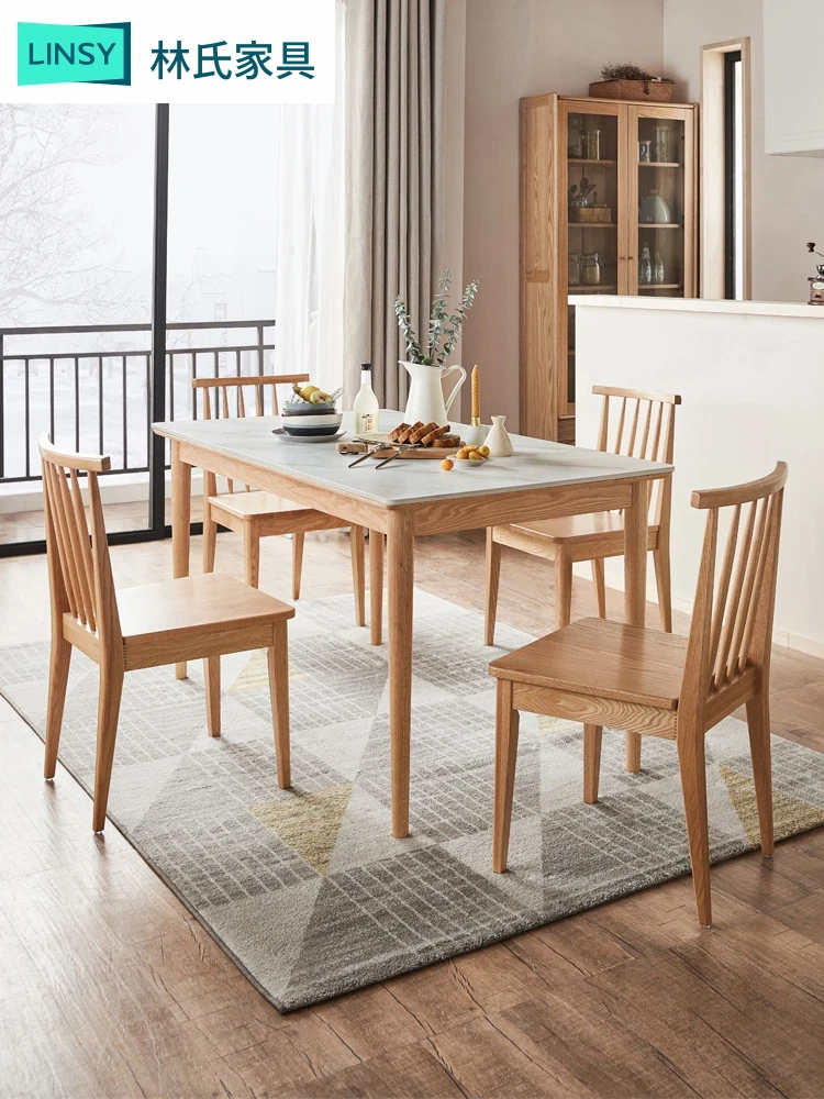 リン氏家具 オーク材の岩板ダイニングテーブル&チェアセット 2025年新作 無垢脚の食卓 家庭用 林氏木業 LH169 - ナチュラルなデザインで、心地よい食事空間を演出!