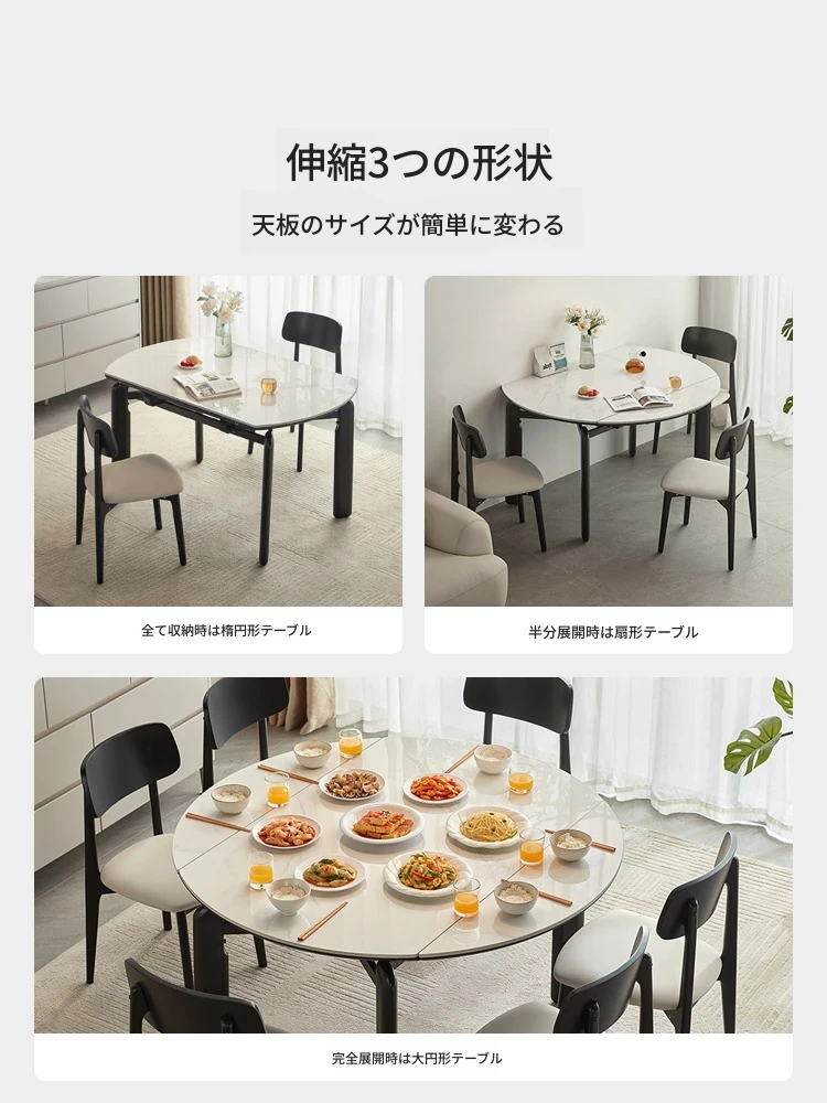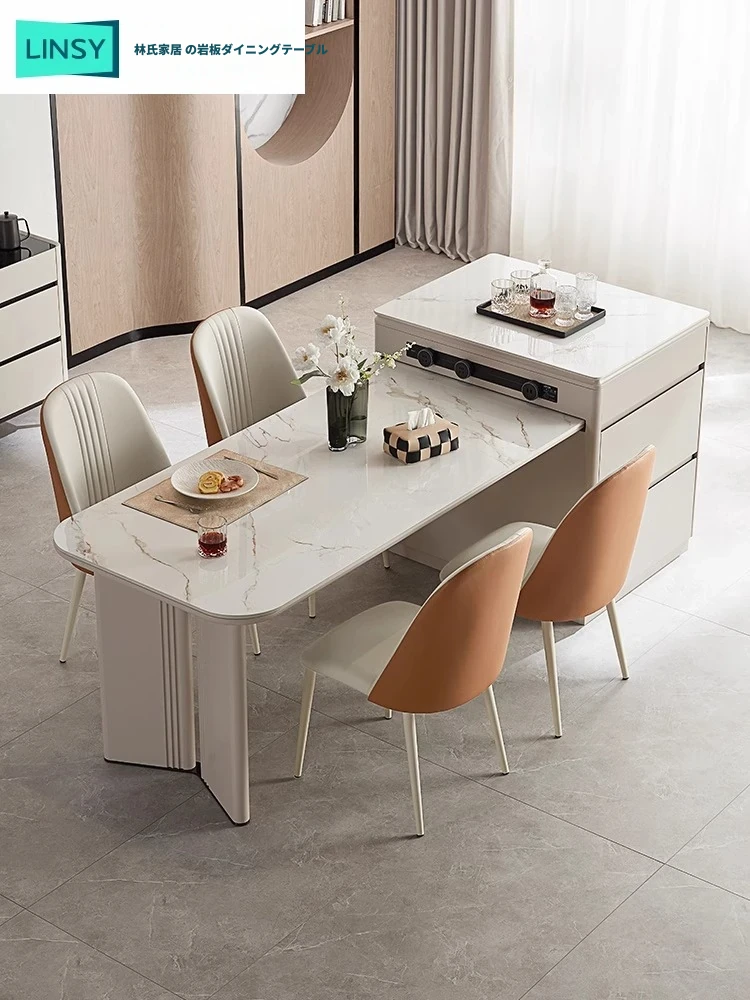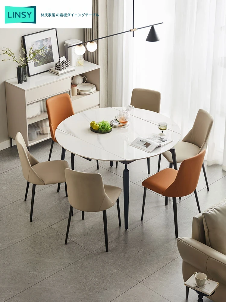 林氏家居のモダンミニマリストデザイン、伸縮可能な岩板ダイニングテーブル - 家族や友人と過ごす最高の食卓を提供!洗練されたスタイルでスペースを有効活用。