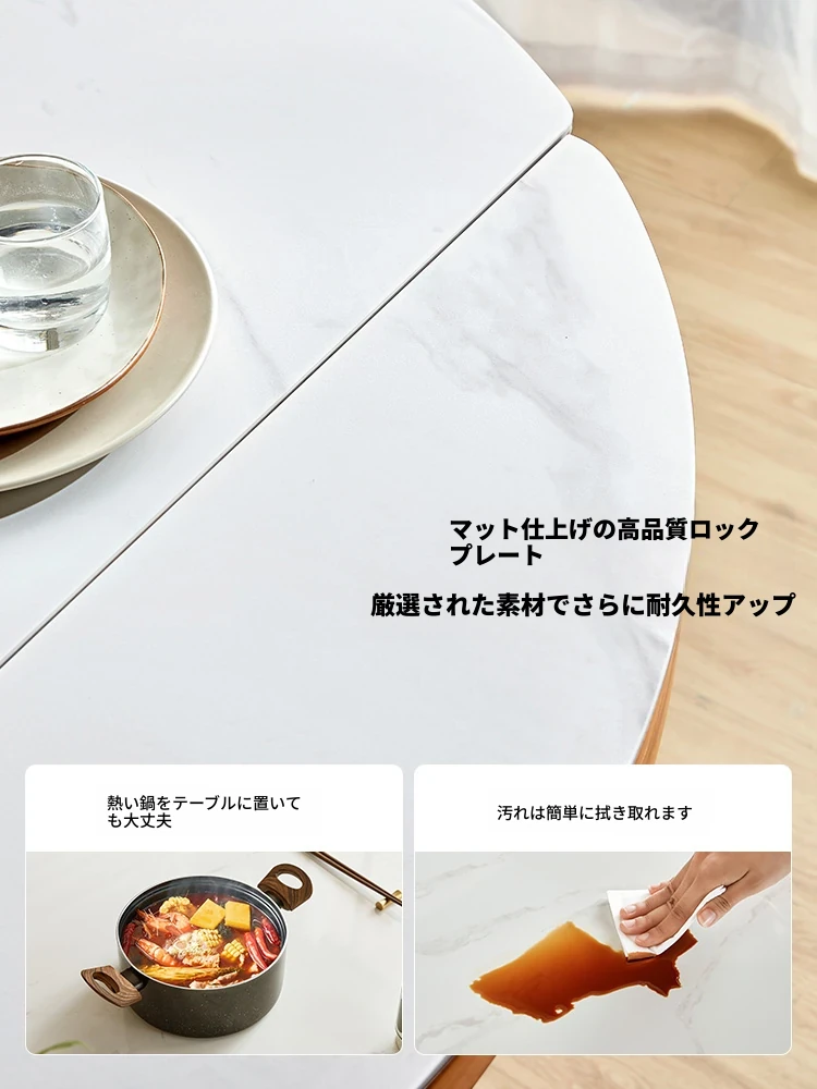 政府の補助金付き!林氏家居の高品質な岩板ダイニングテーブル。回転式プレートで便利な家用折りたたみ伸縮デザイン、実木脚で丈夫。小さいスペースにも最適なスクエア&ラウンド型。