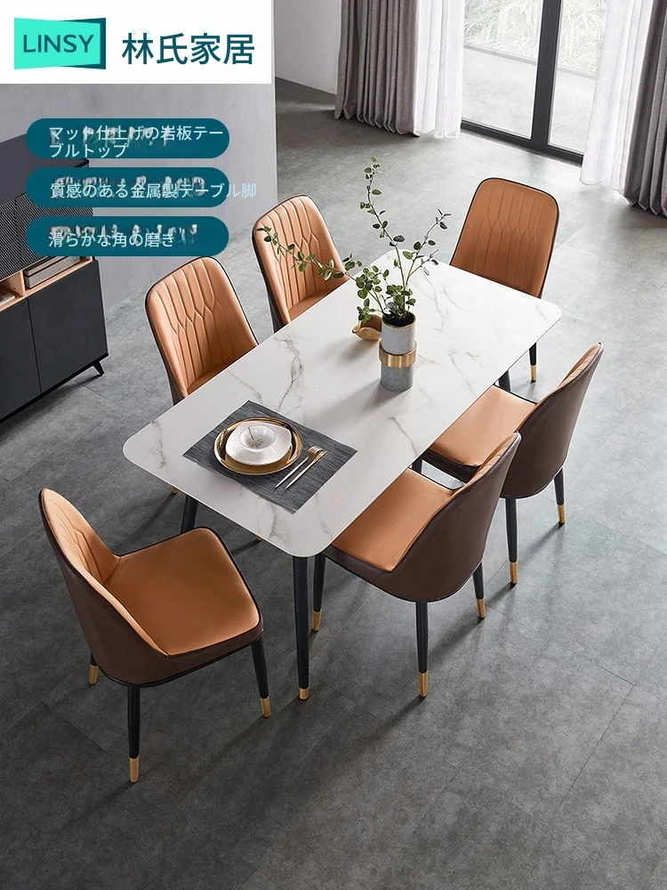 リンシホーム モダンで軽やかなラグジュアリー 岩石板ダイニングテーブルセット 大理石模様 小型住宅向け ミニマリストデザイン 家庭用コンビネーション JI1R