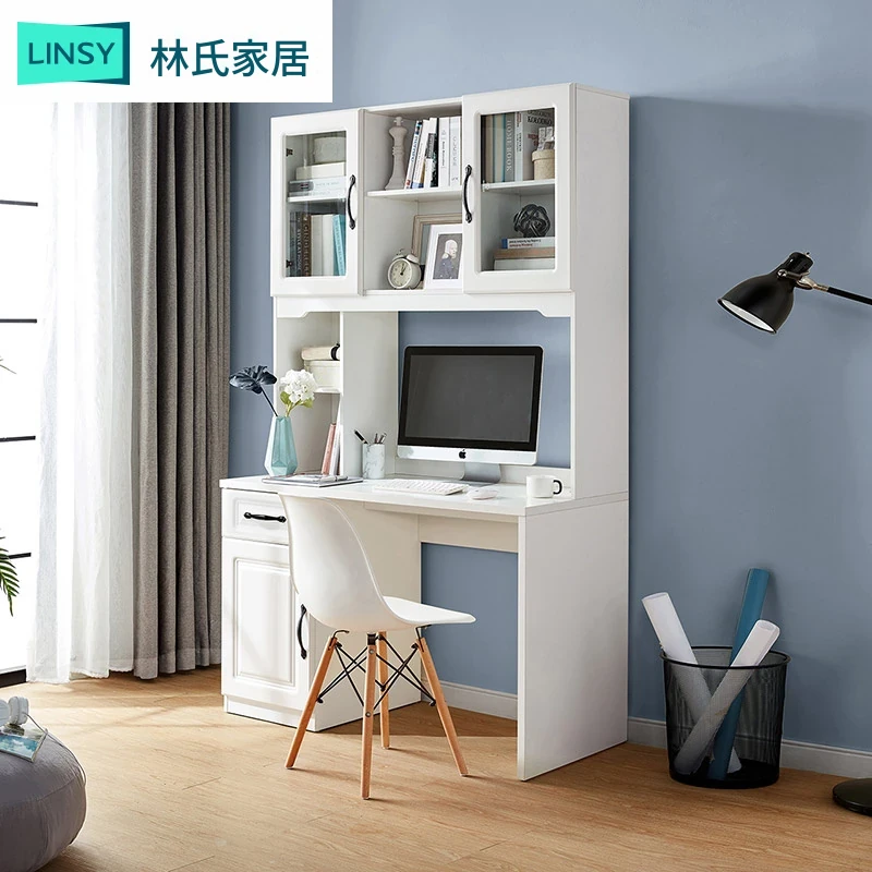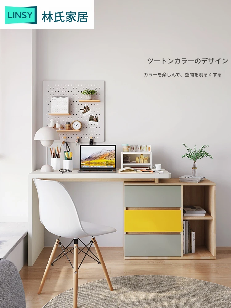林氏木業のモダンスタイル一体型デスク&書棚セット – 家庭用・寝室・書斎に最適!スタイリッシュなデザインで、収納力抜群のデスクチェアコンボ【JO1V】!快適な学習環境を実現します。
