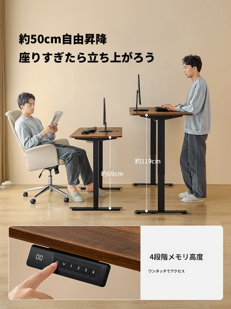 政府の補助金で実現!林家の電動昇降デスク——快適な作業空間を提供するゲーミングデスク&オフィスデスク。自動高さ調整機能付きで、仕事も遊びも快適に!