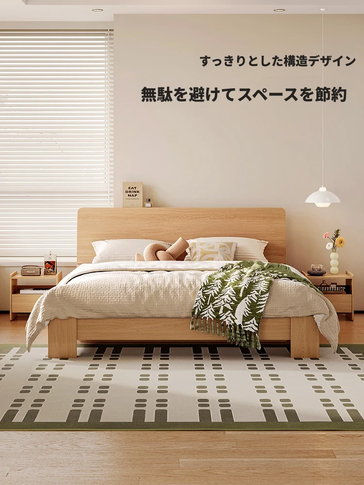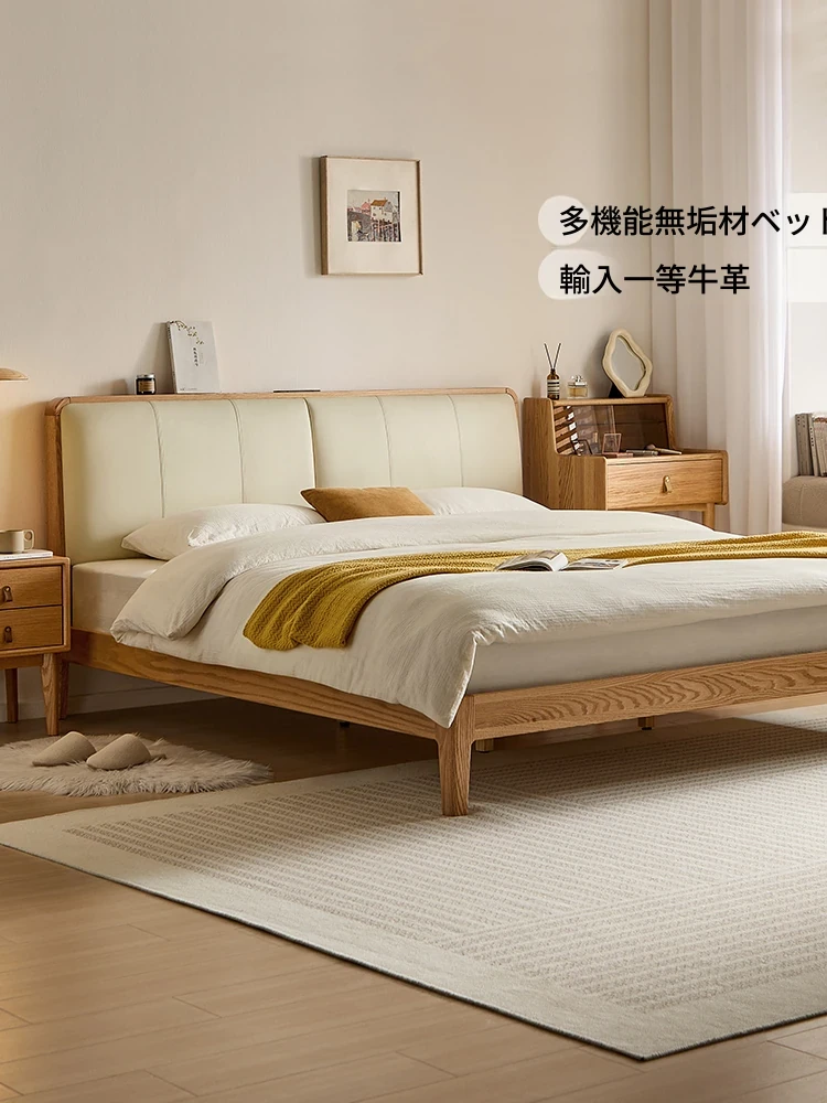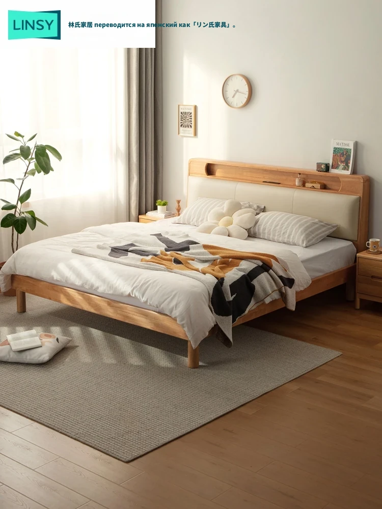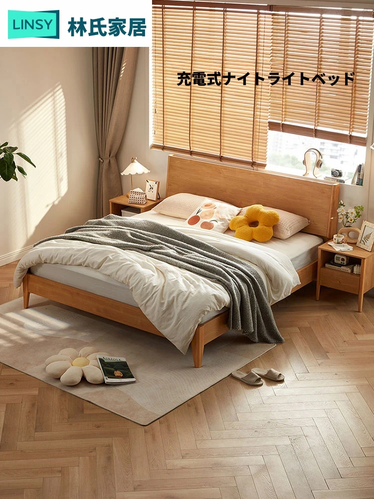 林氏家居 北欧スタイルの無垢材1.5mベッド - おしゃれで温かみのあるオーク材使用!快適なソフトパッキングデザインのダブルベッド。理想の寝室を演出!林氏木業が贈る、上質なライフスタイル。