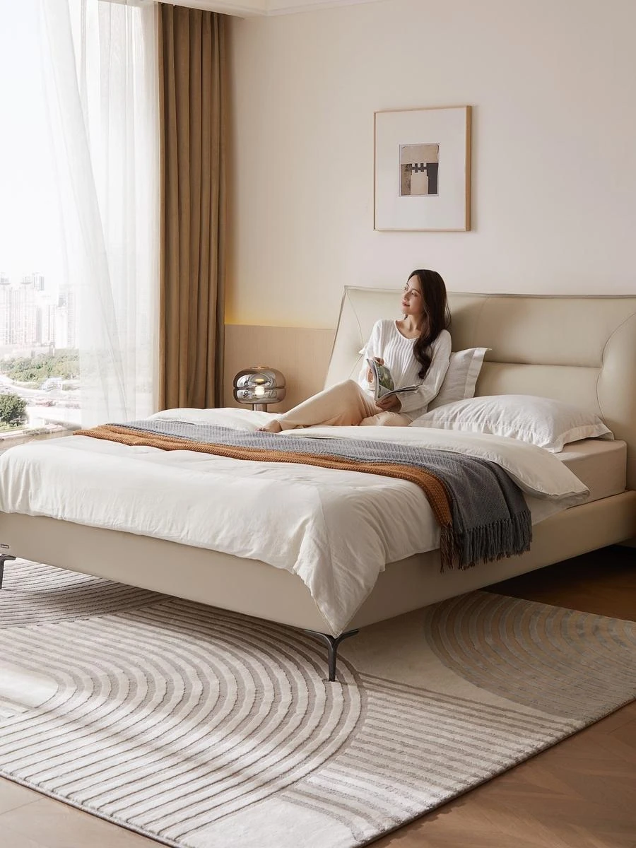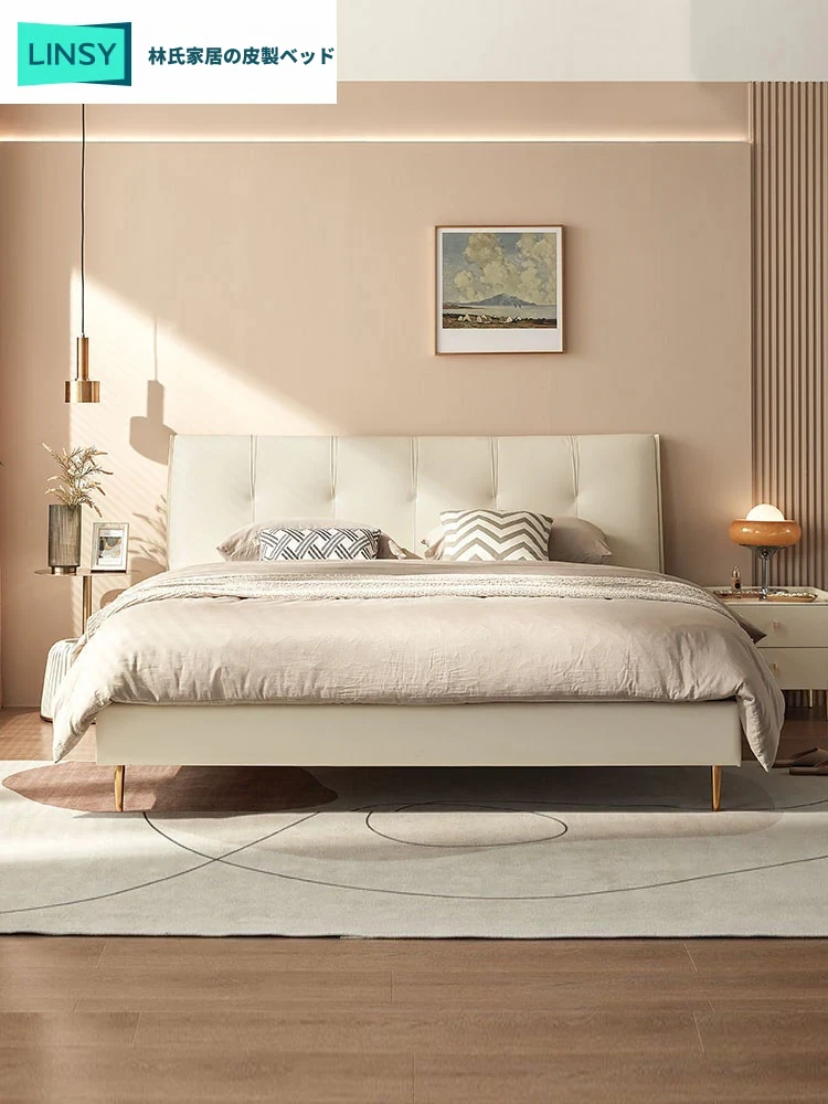 林氏家居最高級レザー浮遊ベッド|イタリアンミニマルデザインの高級ソフトパッキング|広々とした主寝室に最適!おしゃれで快適な睡眠空間を演出。林氏木業の品質をお試しあれ。