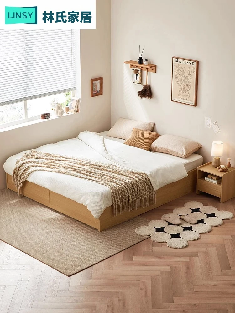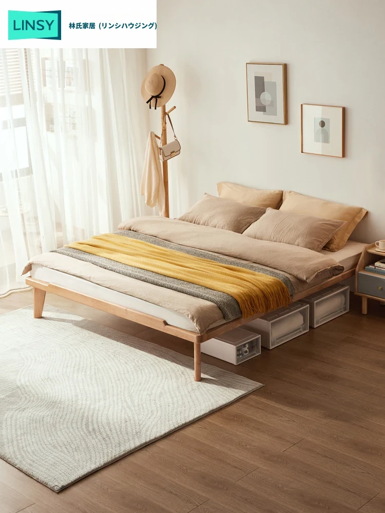 林氏家居 北欧スタイルの無垢材使用 ダブルベッド - ヘッドボードなしのシンプルでエレガントなデザイン、畳フレーム対応の高品質モデル。心地よい眠りをサポートする林氏木業の選りすぐりの一品!