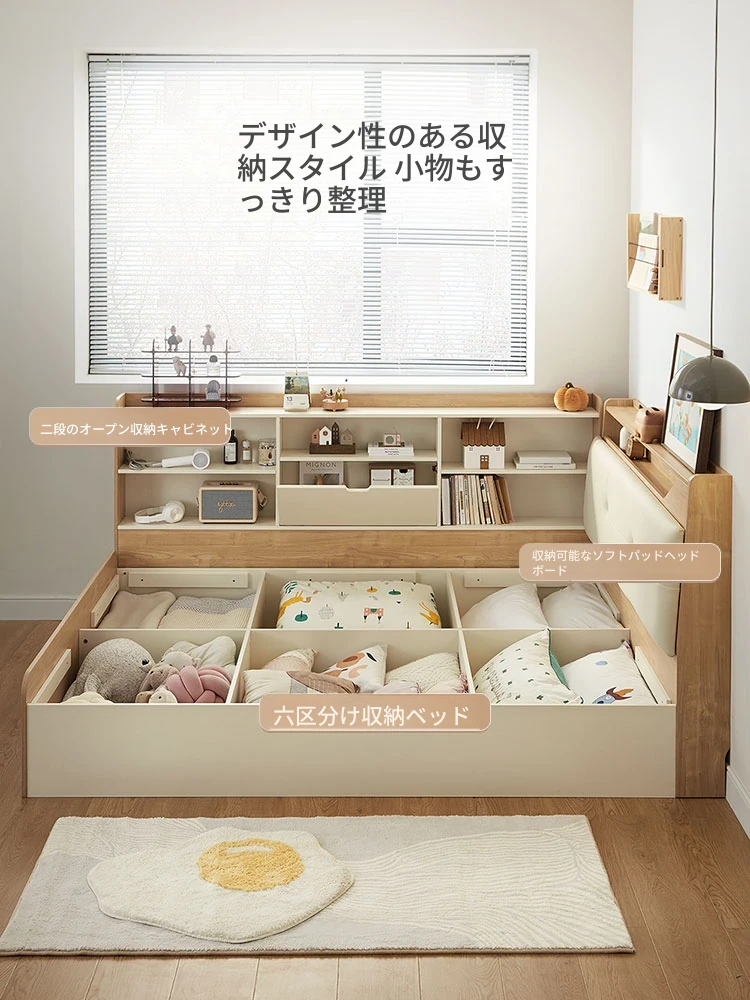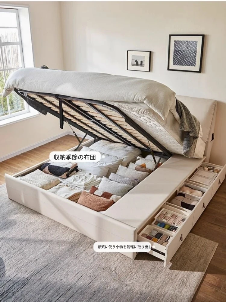 リンシー家居のタタミ収納ベッド|省スペースでおしゃれな板式一人用ベッド|小さな部屋でもスッキリ収納!