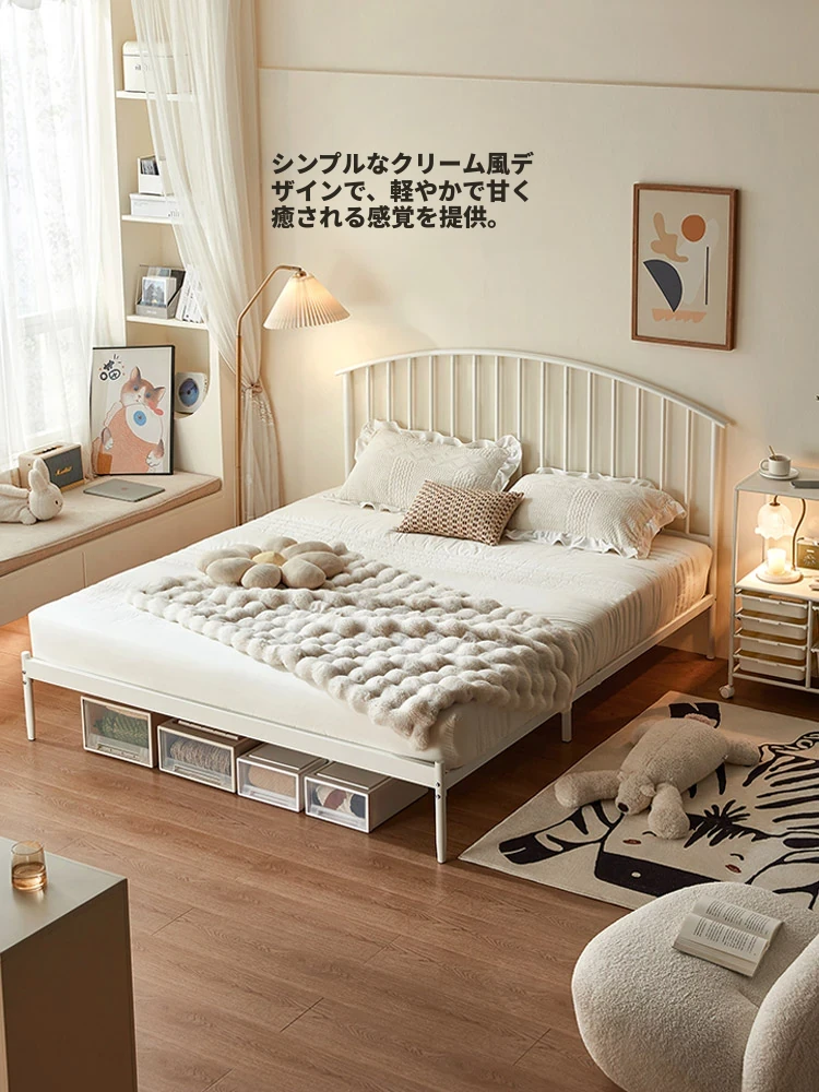 政府補助対象!シンプルでエレガントなフレンチスタイルのリン氏鉄製ベッド|高級感あふれる姫系デザイン|家庭用ダブルサイズ|鉄製フレームの耐久性抜群!