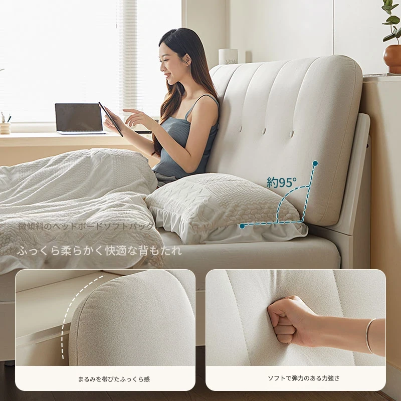 国からの補助金付き!林氏家具の現代的でシンプルな布製ベッド、1.2mシングルベッド。狭い部屋でもぴったり収まる、壁に寄せてスッキリ配置可能!