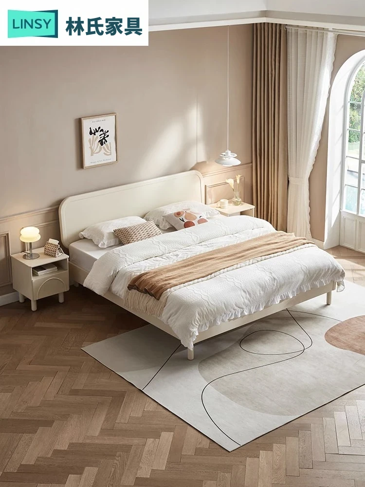 林氏家居シンプルクリーム風実木脚ベッド 主寝室向け 1.5メートル ダブルベッド 白家具 LINSHI木業OU5Aで、快適な眠りを楽しみましょう!シンプルなデザインでお部屋をおしゃれに演出。