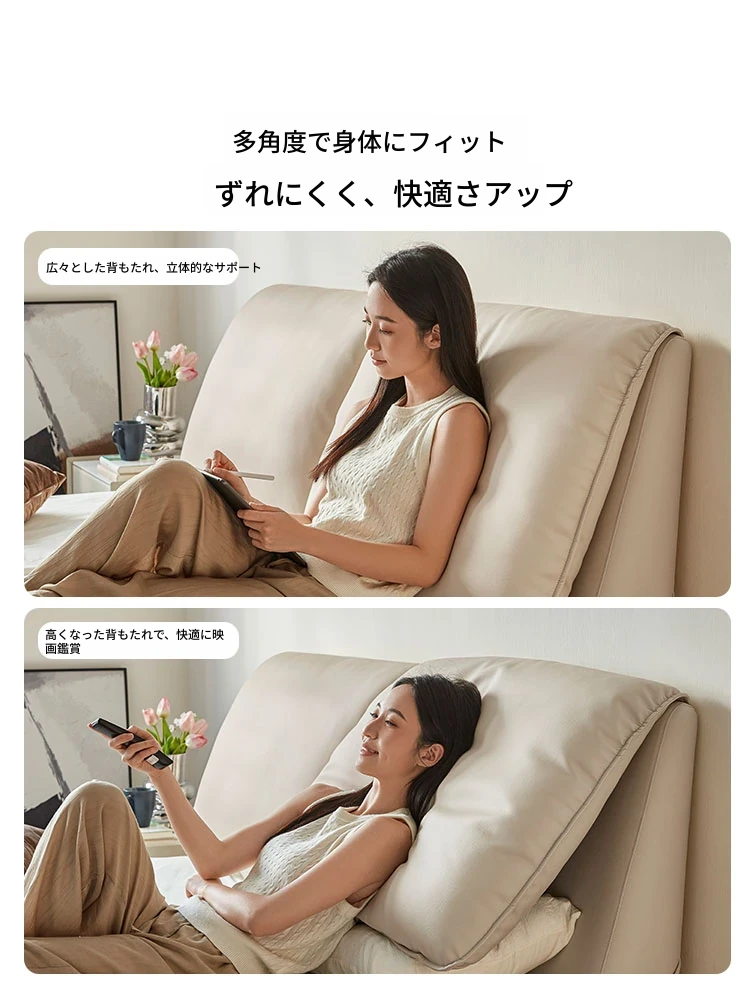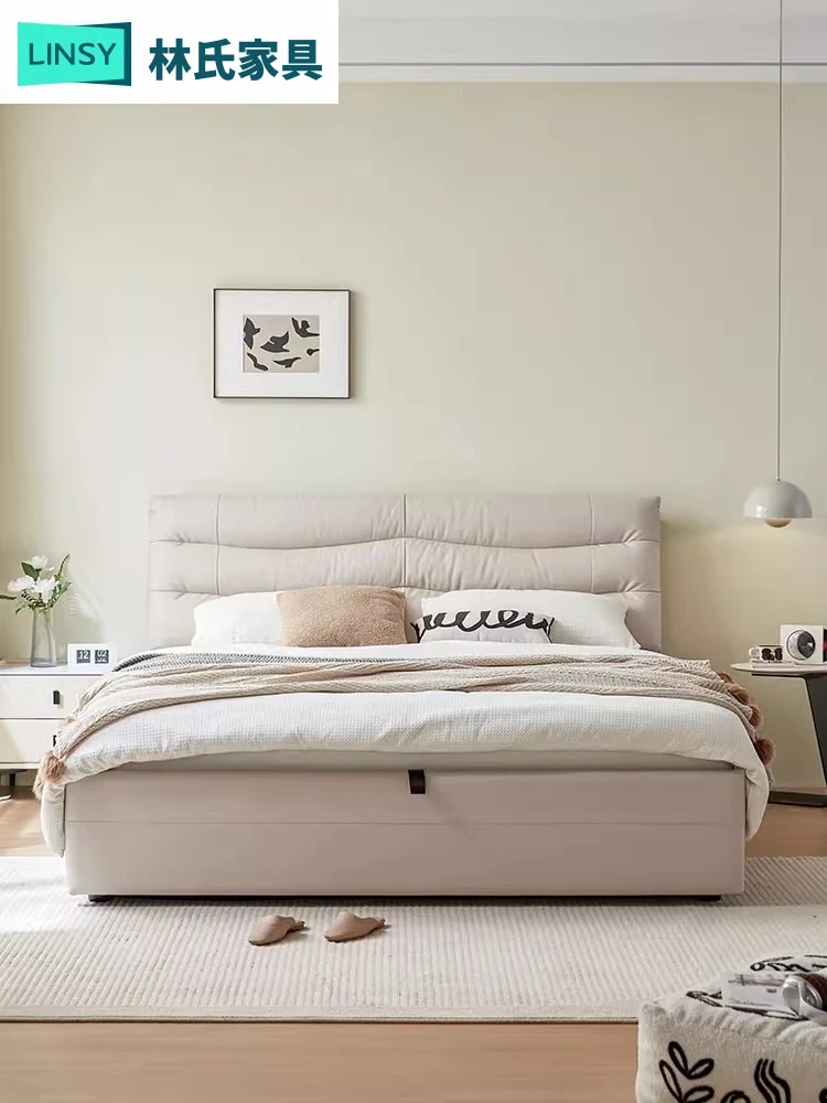 林氏家居のクリーム風テクニカル布を使用した寝室用シンプルソフトパッケージダブルベッド - 高さ調整可能な収納付き、スタイリッシュで機能的なMI3Aモデル!