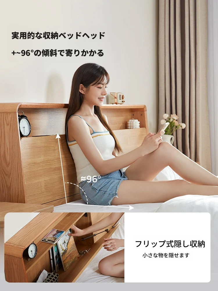 リシホーム天然木製1.8mダブルベッド収納付き浮遊ベッド|政府補助金対象でお得に購入!快適な睡眠をあなたに。