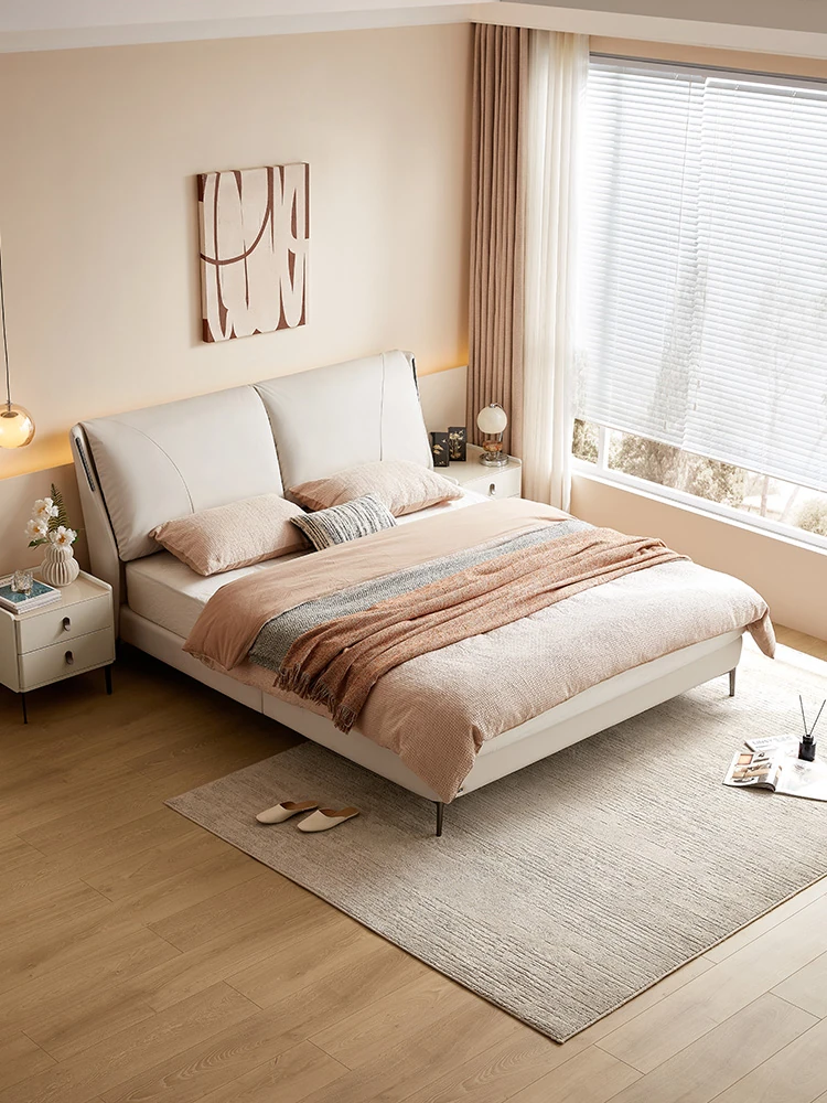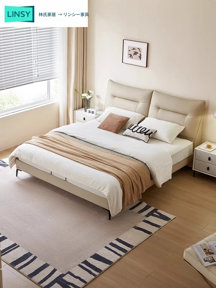リンズ家具のイタリアンスタイル本革ベッド、相互干渉なしの柔らかいパッケージデザイン、2025新作、ラグジュアリーな婚姻用ベッドPC299。快適な眠りを追求し、洗練された空間を演出します!