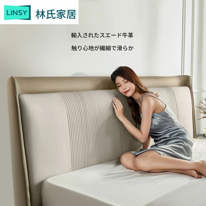 リンシホームの本革使用、互いに干渉しないデザインのダブルベッド。主寝室にぴったりの1.5mサイズ、2025年新作モデル TPC129。快適な眠りと洗練されたスタイルをお届け!