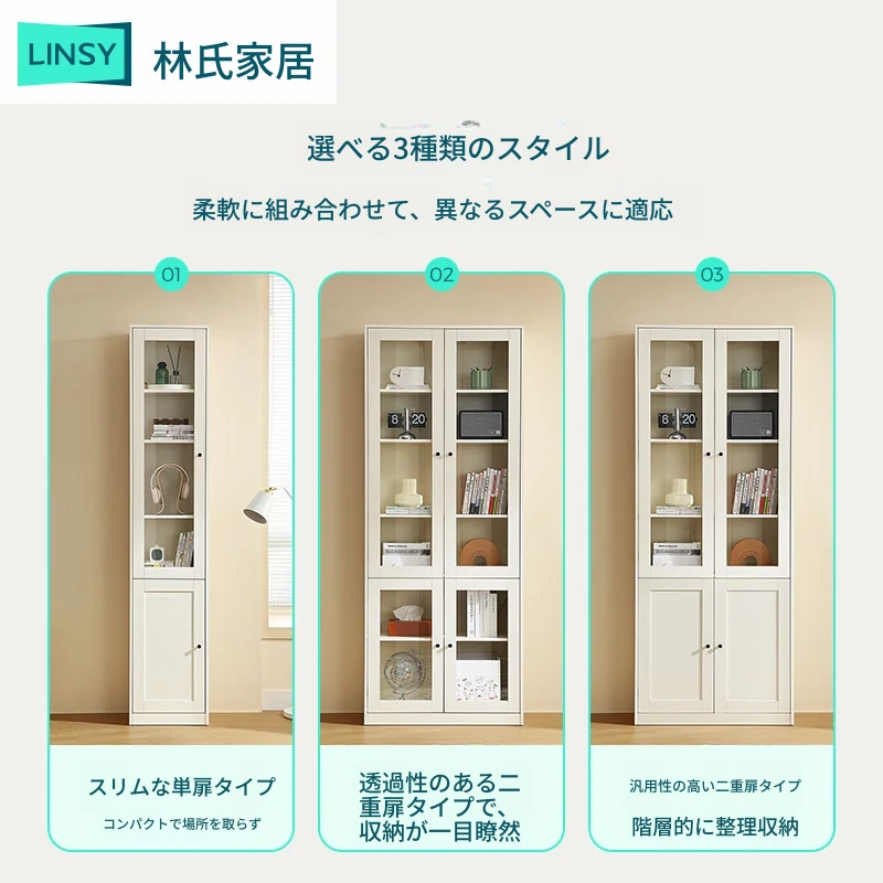 政府支援!林氏家居の魅力的な展示キャビネット、扉付きでホコリから守る!壁付けデザインの書棚、収納力抜群の書庫としても活躍。理想的な収納ソリューションをお届けします!