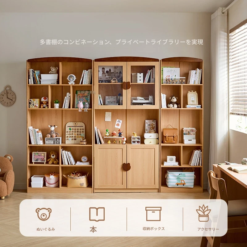 リンシー家居リビング自由組み合わせ 子供用本棚 ガラス扉付き コーナーブックシェルフ 林氏木業 LH079収納力抜群!子供のお部屋をおしゃれに彩ります!