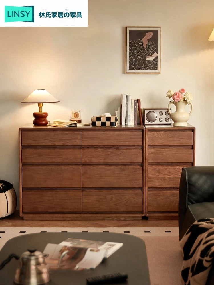 リンシー家具のレトロな無垢材四段チェスト|寝室に最適なオーク製ウォールストレージキャビネット|リンシー木業のココシリーズでお部屋をスタイリッシュに演出!