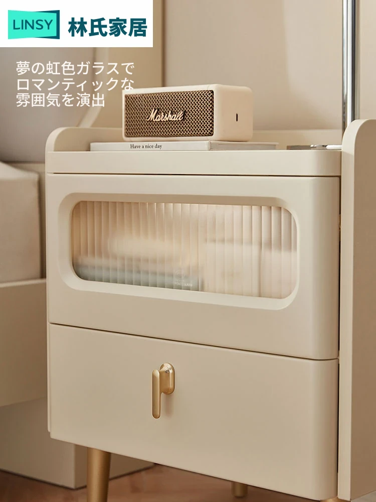 リンシ家居のクリーム風デラックス収納ナイトテーブル - おしゃれなインテリアにぴったり!上質な素材で、機能性とデザインを両立。快適な空間を演出します。