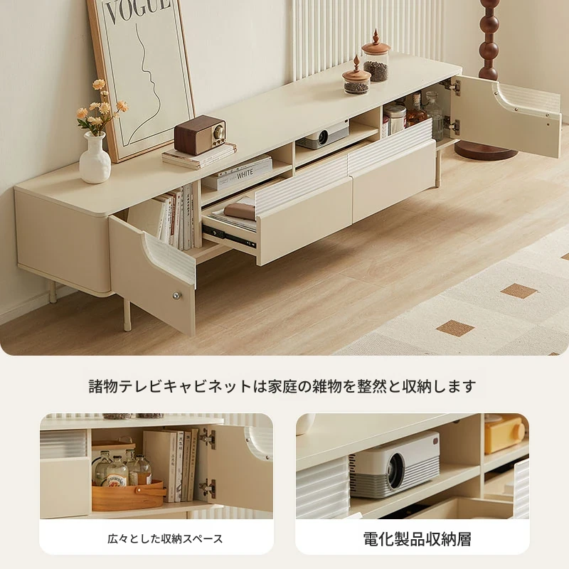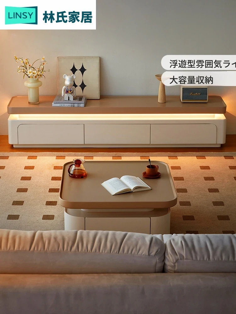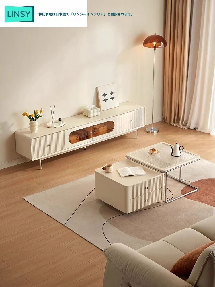 リンシ家居のクリーミー調テレビボード&収納コーヒーテーブルセット - 2025年新作、リビングルームを彩るおしゃれで実用的な家具。お部屋の雰囲気を格上げ!