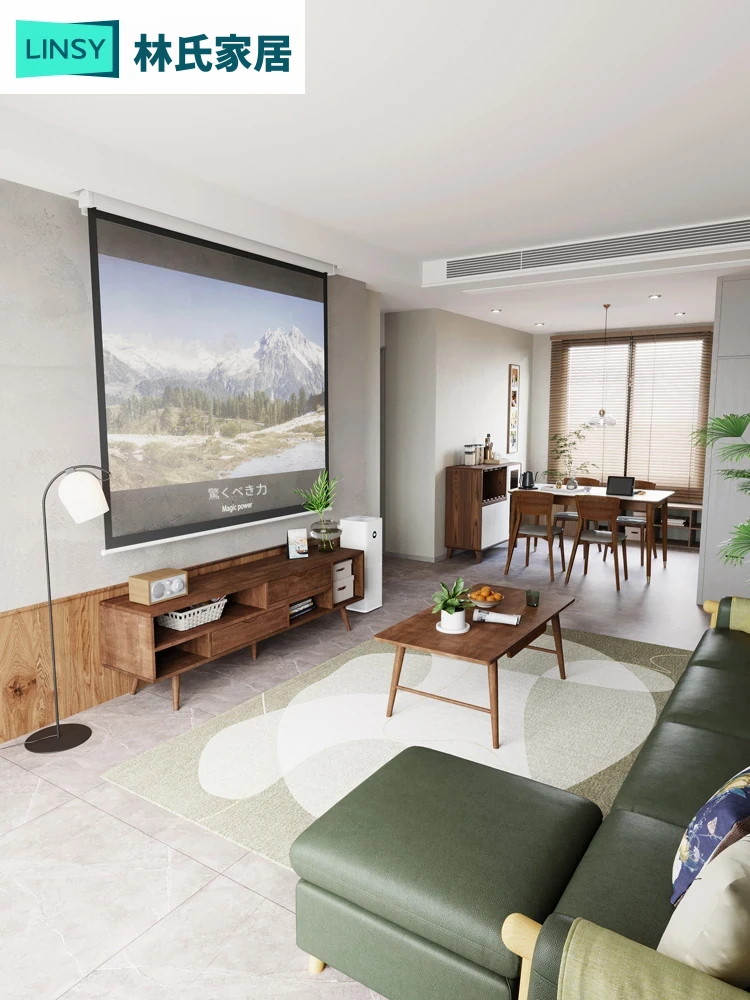 林氏家居のオシャレなテレビ台&コーヒーテーブル - 小型住宅に最適なウォールナット調の天然木製キャビネット、LS003モデルでスタイリッシュな空間を演出!