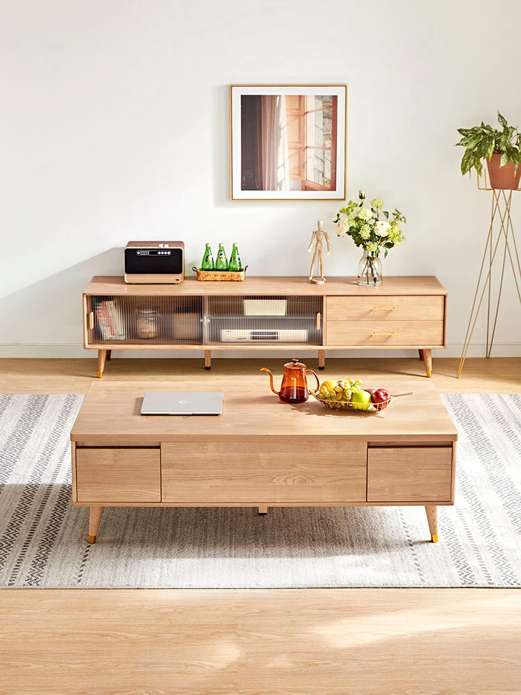 政府補助付き!林氏家具のナチュラルウッドリビングルームテレビ台&コーヒーテーブルセット。実木脚付きのコンパクトデザイン、狭いお部屋にもぴったり!あなたのライフスタイルをクラスアップ!