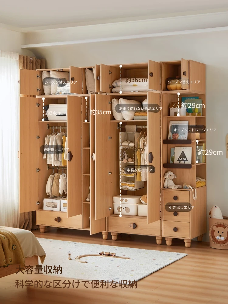 政府補助対象!林氏家居の無垢材子供用クローゼット - 男の子の寝室にぴったり!2024年新登場のスタイリッシュなデザインで、安心・安全な素材使用。お部屋をオシャレに彩る一品です!