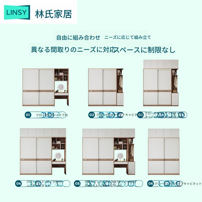 林氏木業の軽奢スタイル衣装棚&ドレッサー一体型!自由に組み合わせ可能なスペースを有効活用。天井までのスライディングドア付き、シンプルでスタイリッシュな家庭用衣装収納。寝室に最適なオシャレな選択!