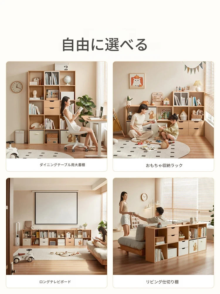 リンシー家具 キッズ収納 ホコリ防止 自由組み合わせ格子棚 家庭用リビング壁掛けディスプレイキャビネット | おしゃれで機能的、子供部屋をすっきり整理!