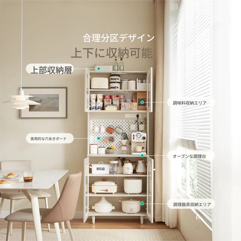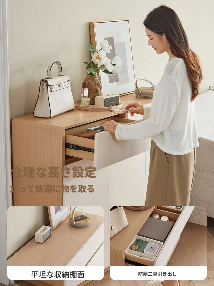 リンシー家具 リビング用クリーム色の無垢材製マルチストレージキャビネット 壁付け収納・ベッドサイドキャビネット おしゃれで機能的な収納力を実現!お部屋をスッキリ彩るスタイリッシュなデザインです。