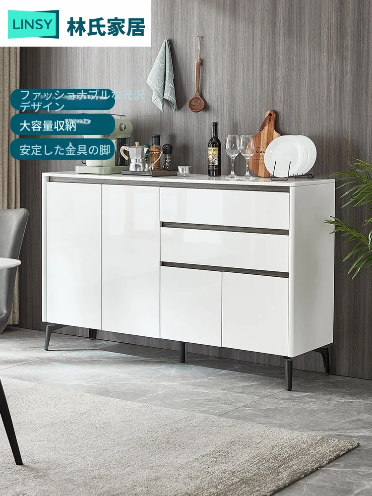 リン氏木業モダンミニマリストデザインのダイニングサイドキャビネット - 家庭用おしゃれなキッチン収納、壁際にぴったりフィットするコンパクトな収納家具LH186。おしゃれなインテリアで空間を華やかに演出!