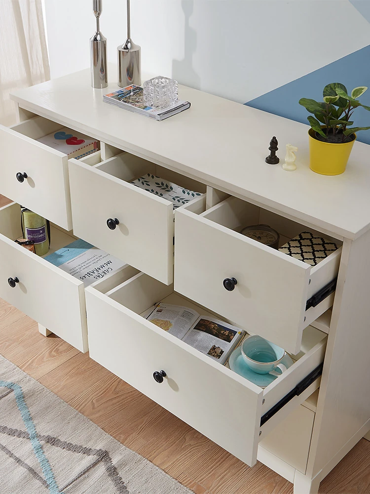 リンシー家居のクリーム風全実木製六段チェスト、寝室収納キャビネット、優雅な五面鏡ドレッサー付きの収納家具。高品質でエレガントなデザインが魅力のリンシー木業製品!