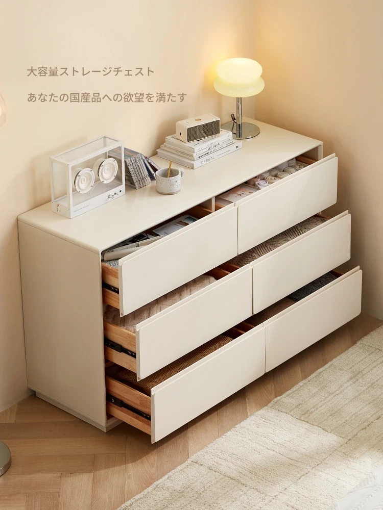 リン氏家具リビングルーム用クリーム色の無垢材製ストレージキャビネット - ベッドの足元にぴったりな収納家具!おしゃれで機能的なデザインが魅力のリン氏木業をお楽しみください。収納力抜群でお部屋をスッキリ整えます!