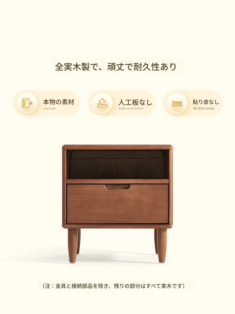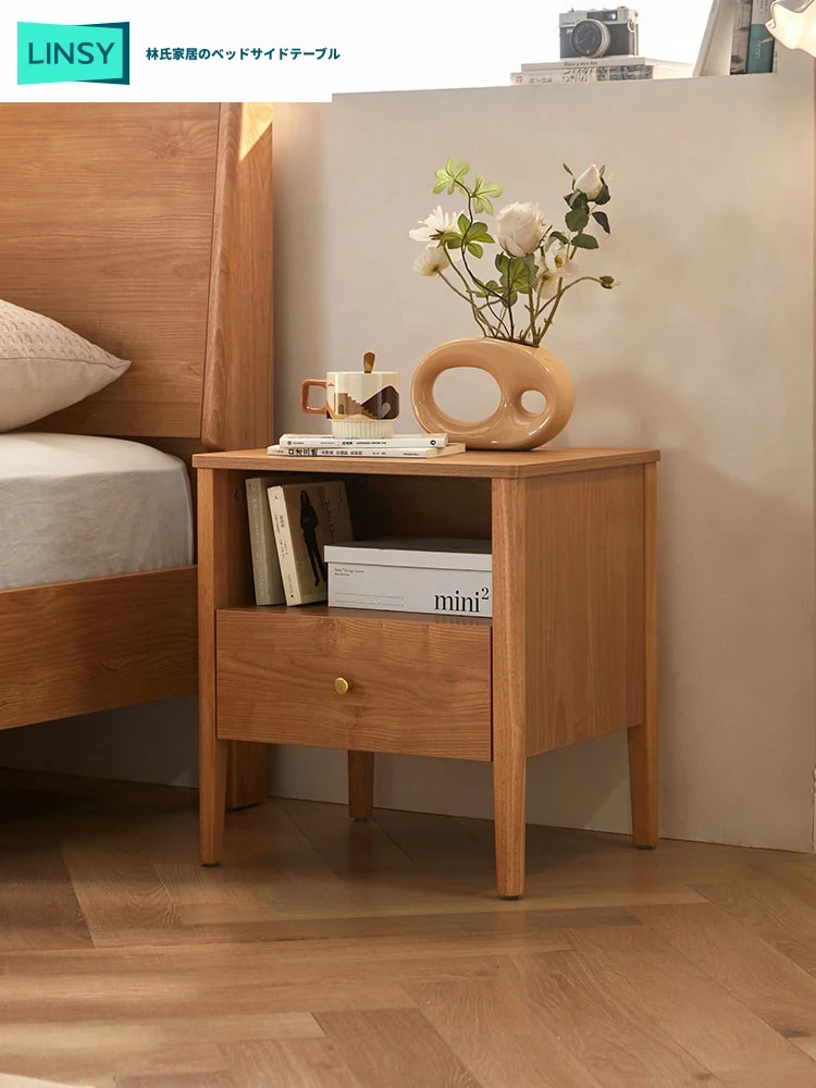 林氏家居モダンミニマリスト天然木製ベッドサイドテーブル|おしゃれな収納と便利な引き出し付き|壁にぴったりフィットするお部屋に最適 AS1B