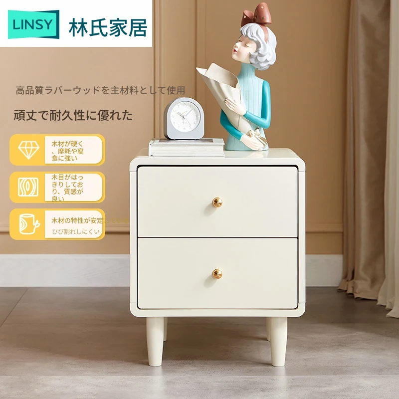 リンシー家具 北欧スタイル シンプル ベッドサイドテーブル 抽斗付き 寝室用 新作 クリーミー風 おしゃれな収納キャビネット OU1B