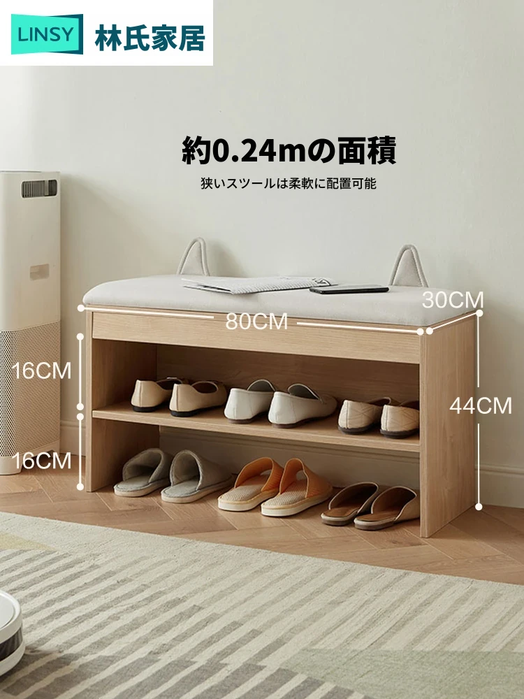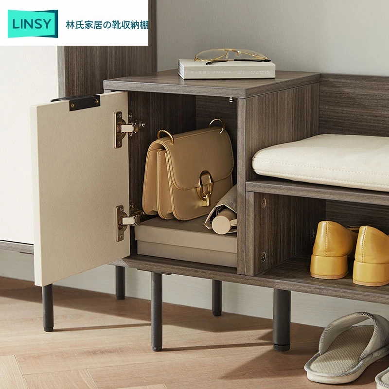 政府支援!林氏家居おしゃれな一体型スツール&シューズキャビネット、玄関やリビングにぴったりな収納付きで、靴の履き替えも楽々♪ 家庭用にも最適なコンパクトデザイン!