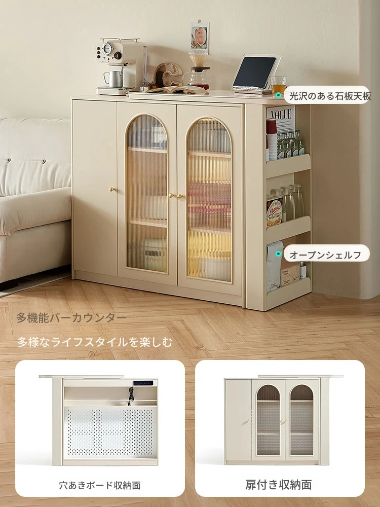 政府のサポートでお得!林氏家居のフレンチクリーム風ダイニングサイドキャビネット。リビングにぴったりな壁付け一体型収納ワインキャビネット。お洒落で機能的な収納力を実現!