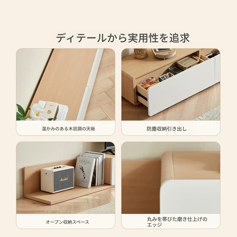 リンシー家具 モダンシンプルなクリーム風 壁掛けテレビキャビネット 小型リビングに最適 ストーン仕上げのNU2Mデザイン