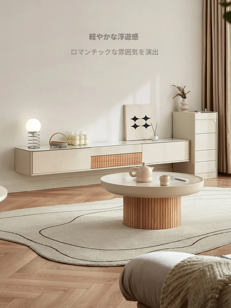 リンシー家居リビングルーム軽奢クリーム風岩盤テレビキャビネット家庭用シンプルモダンロータイプキャビネットとコーヒーテーブルのコンビネーション – スタイリッシュで洗練された空間を演出!