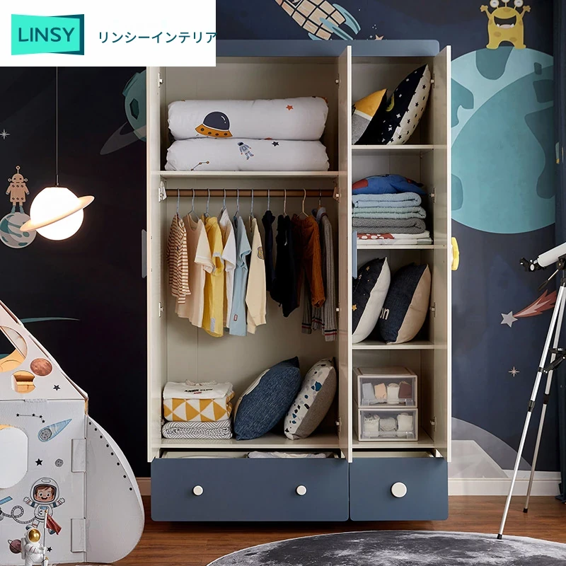 林氏木業のモダンミニマリスト子供用クローゼット|おしゃれで機能的、小型住宅にも最適な3扉仕上げ衣装ダンスDF2D|お部屋をスッキリさせるデザイン!