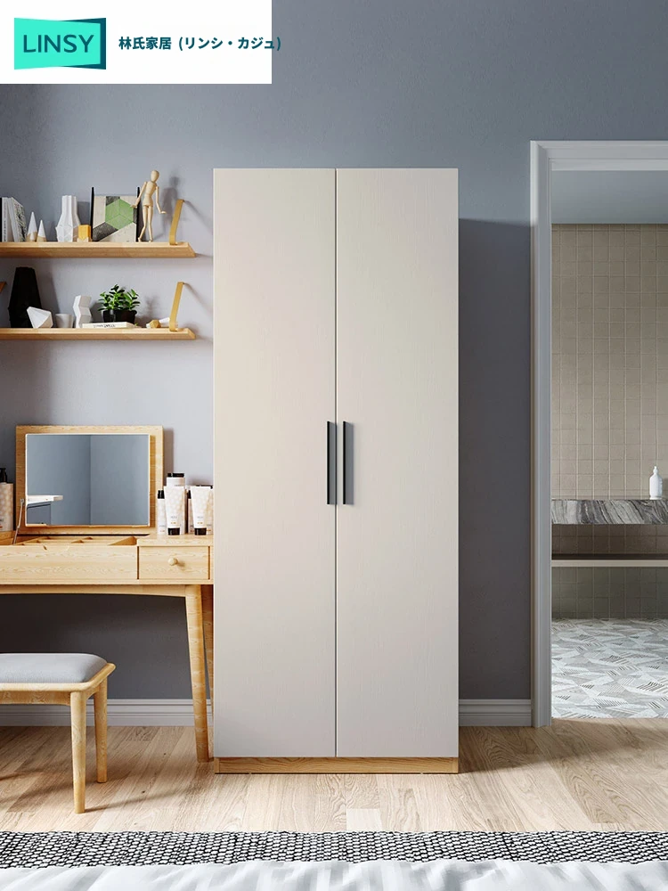 林氏木業のシンプルモダンな二枚扉クローゼット - スペースを有効活用!収納力抜群のネット人気商品JC2D【寝室に最適】